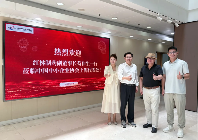 On July 7, Robert H.S. Goe, Vice Chairman of GoeGoe Honglin Pharmaceutical—a vice president unit of the China Association of Small and Medium Enterprises—along with Zhang Qi, General Manager of GoeGoe Honglin Biopharmaceutical (Jiangsu) Co., Ltd., visited the Shanghai Representative Office of the China Association of Small and Medium Enterprises. They held in-depth discussions with Yi Yuqian, Founding Director of the office, on deepening member services and strategic cooperation. Xu Jingjing, Office Director of the Shanghai Representative Office, also attended the meeting.